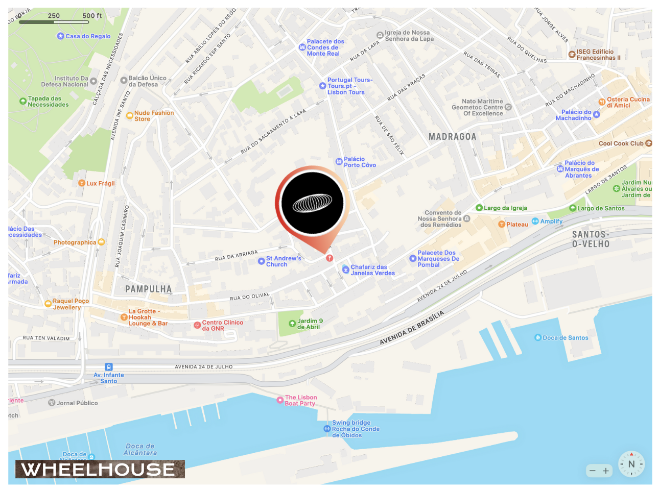 Wheelhouse is nestled in the vibrant heart of Lisbon, Portugal, located at: R. do Conde 9, 1200-635, Lisboa, Portugal