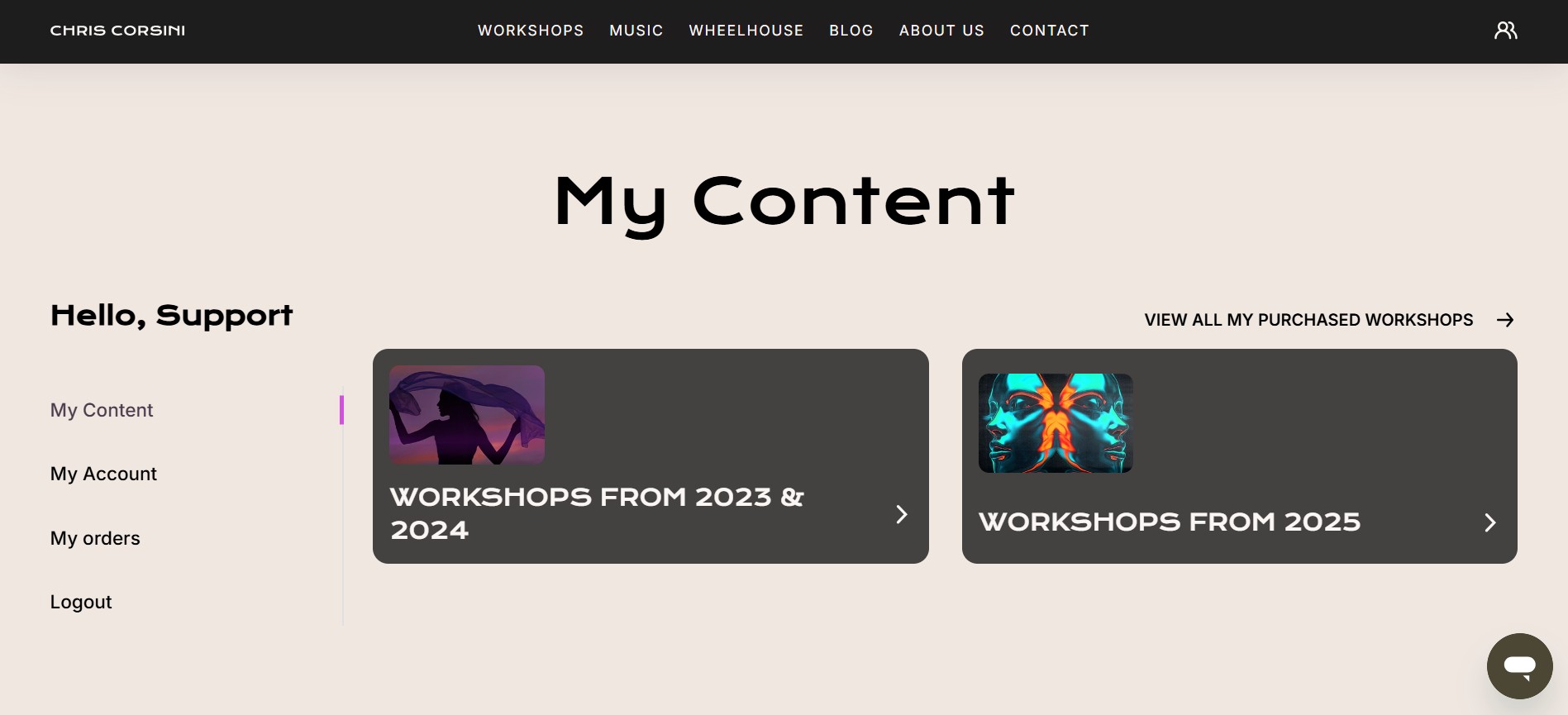 Once logged in, navigate to My Content section and select Workshops From 2025, then Moon Workshops 2025
