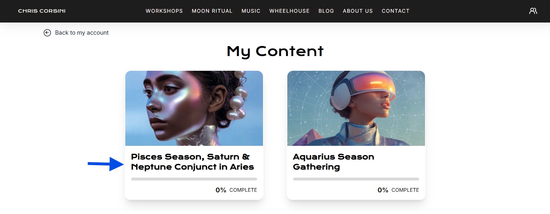 When you purchase a Live Event (such as a Seasonal Workshop or Special Workshop), all of the content will be stored in your Content Library. Follow the steps below to access your workshop, find the livestream link, and download your workbook.