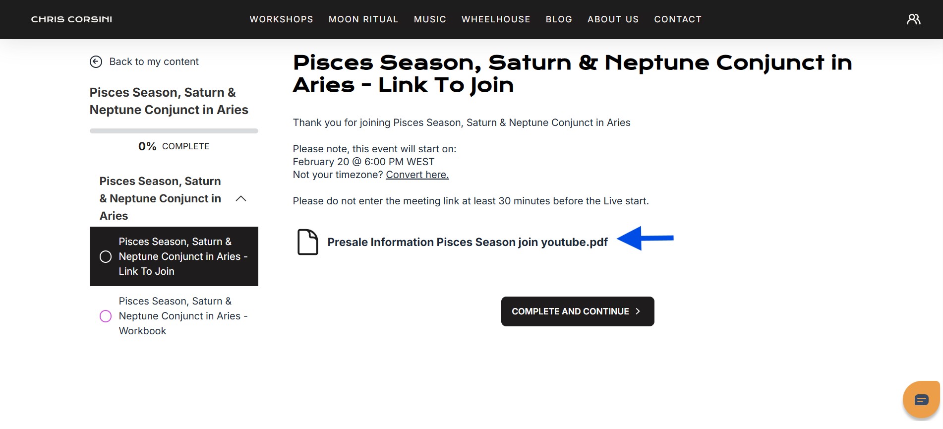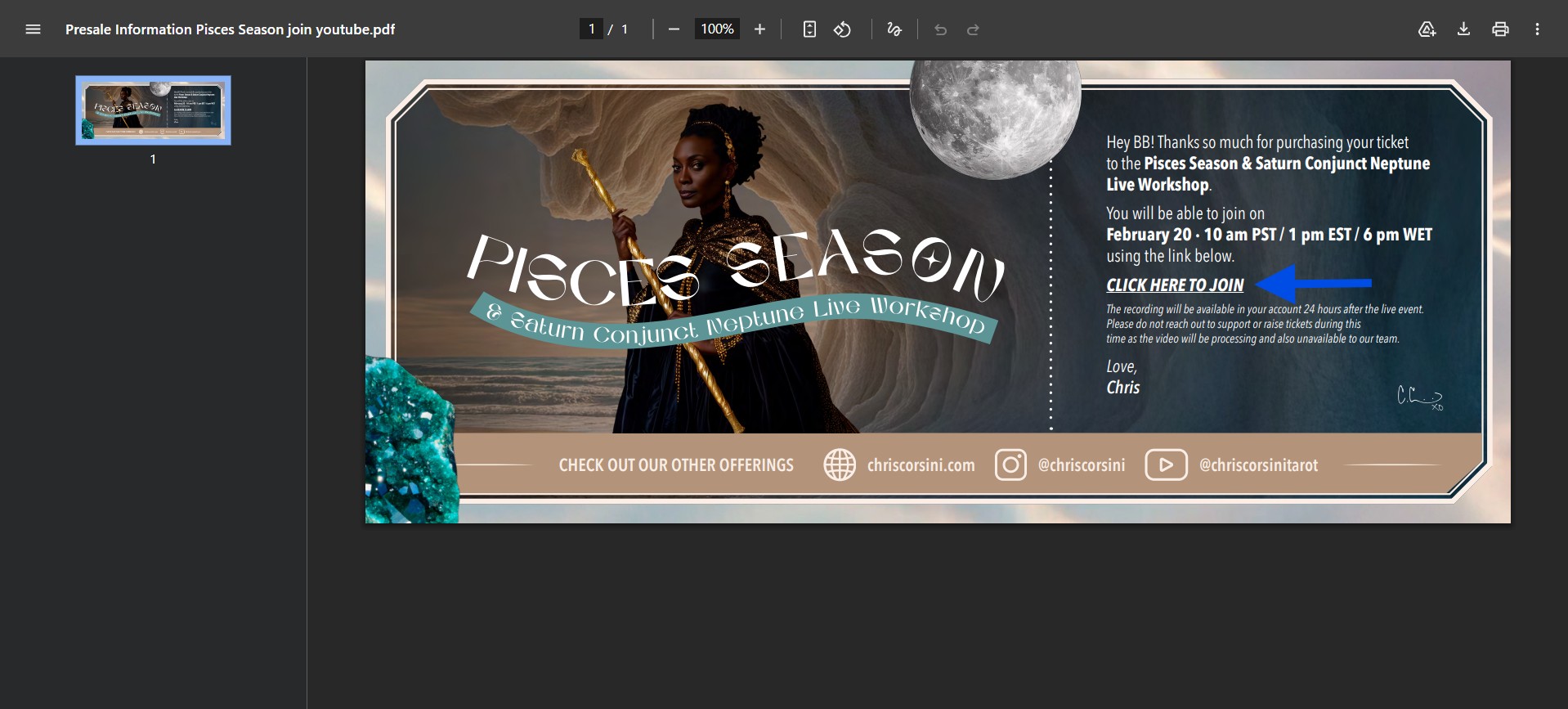 Workbook → click on Pisces Season, Saturn and Neptune Conjunct in Aries Workbook to open and download your digital workbook.