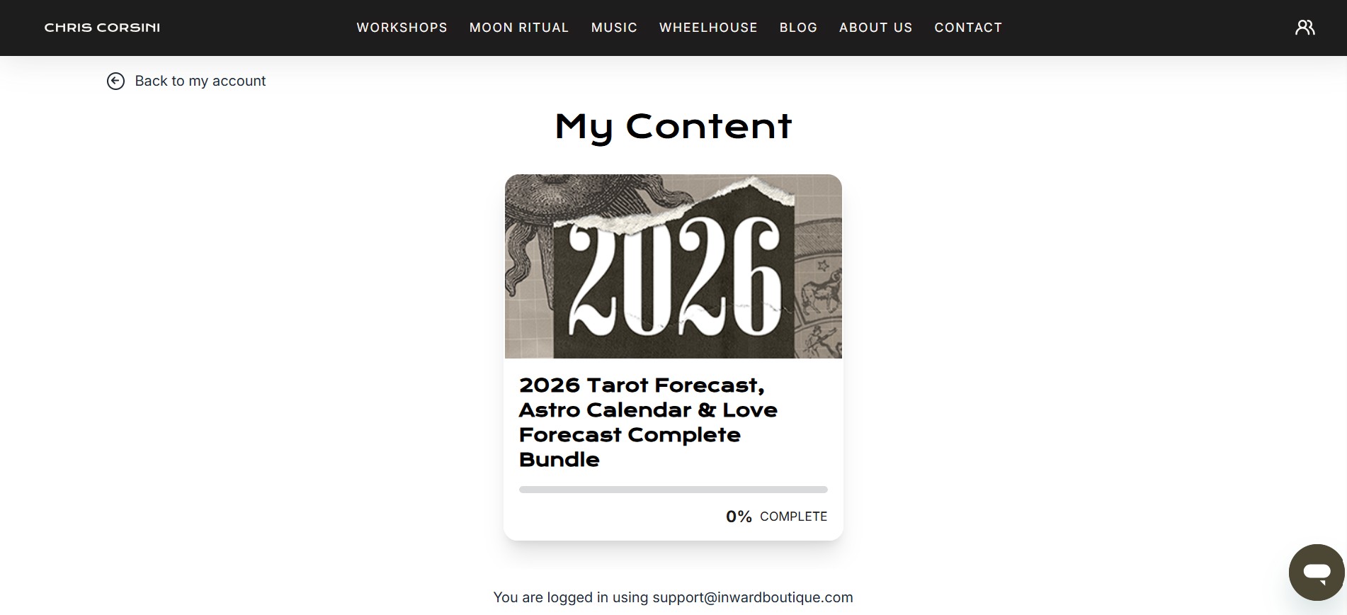 1. Go to our website at https://chriscorsini.com/account/login and log in using the email address you used during registration.