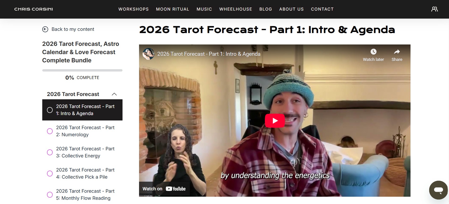 3. From there, go to Workshops from 2026, then click on Tarot Forecast and Astro Calendar 2026, then select Tarot Forecast & Astro Calendar Bundle if purchased together.