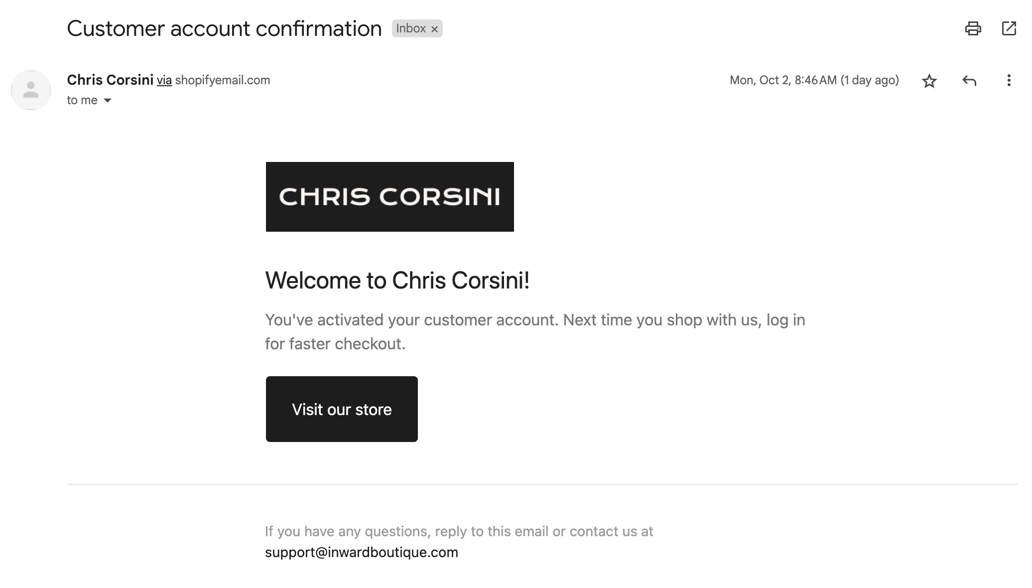 ✦ Check your inbox for an email from us, which will be from support@inwardboutique.com