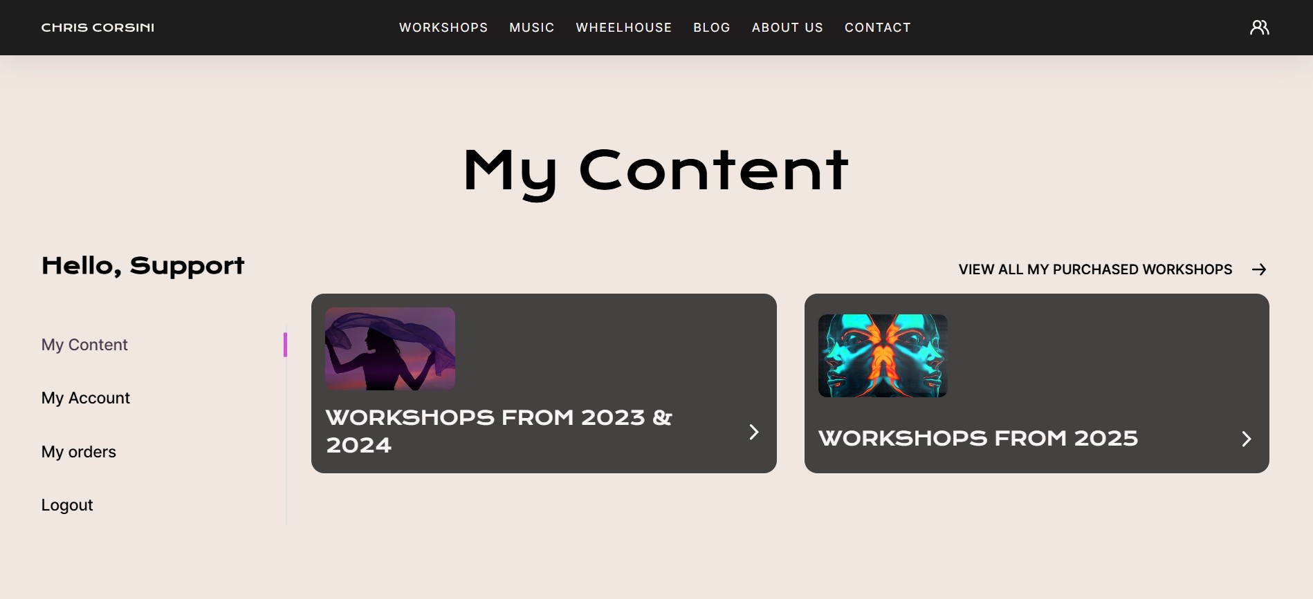 If you’ve purchased or registered for a workshop, you can access it anytime by signing in to your account at https://chriscorsini.com/